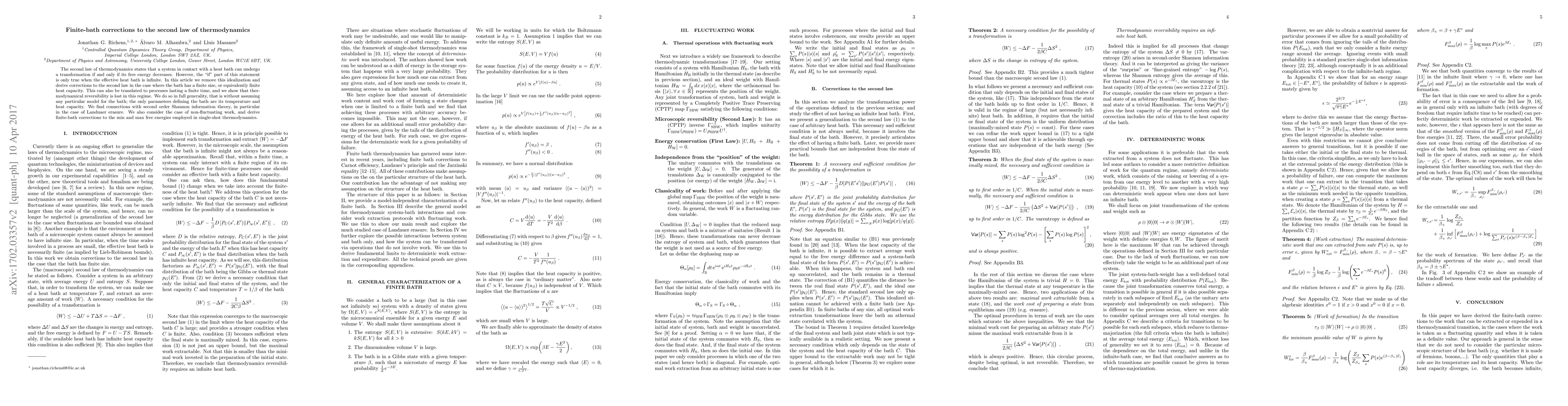 This paper derives corrections to the second law of thermodynamics when the heat bath is finite, showing that thermodynamical reversibility is lost in this regime. It connects these corrections to second order Shannon information theory and explores implications for non-fluctuating work and single-shot thermodynamics.