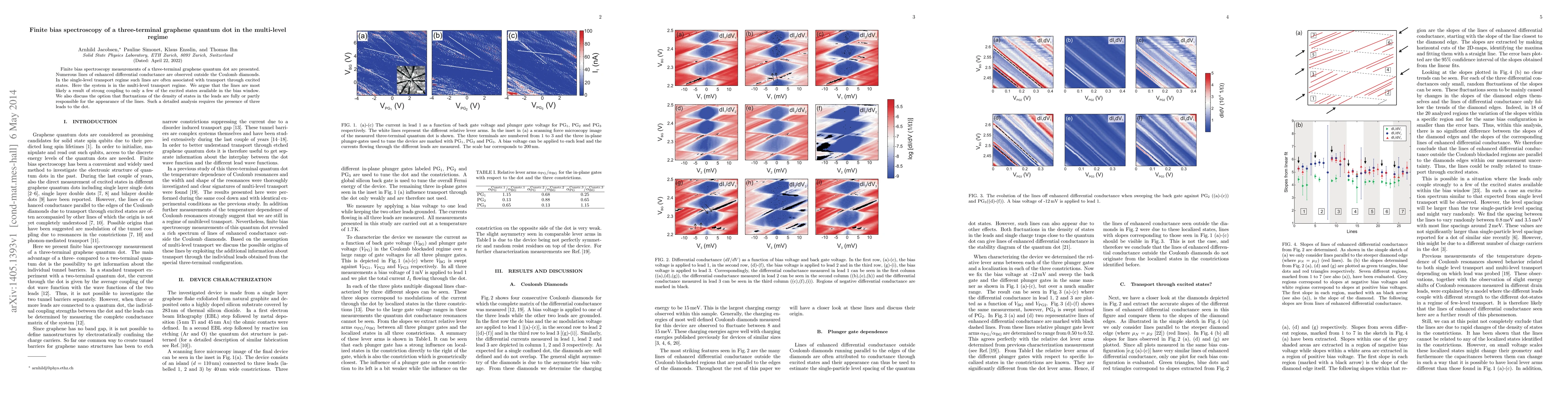 This paper reports on finite bias spectroscopy of a three-terminal graphene quantum dot in the multi-level regime, revealing enhanced differential conductance lines outside Coulomb diamonds. The authors suggest these lines result from strong coupling to a few excited states or fluctuations in the density of states, necessitating three leads for detailed analysis.