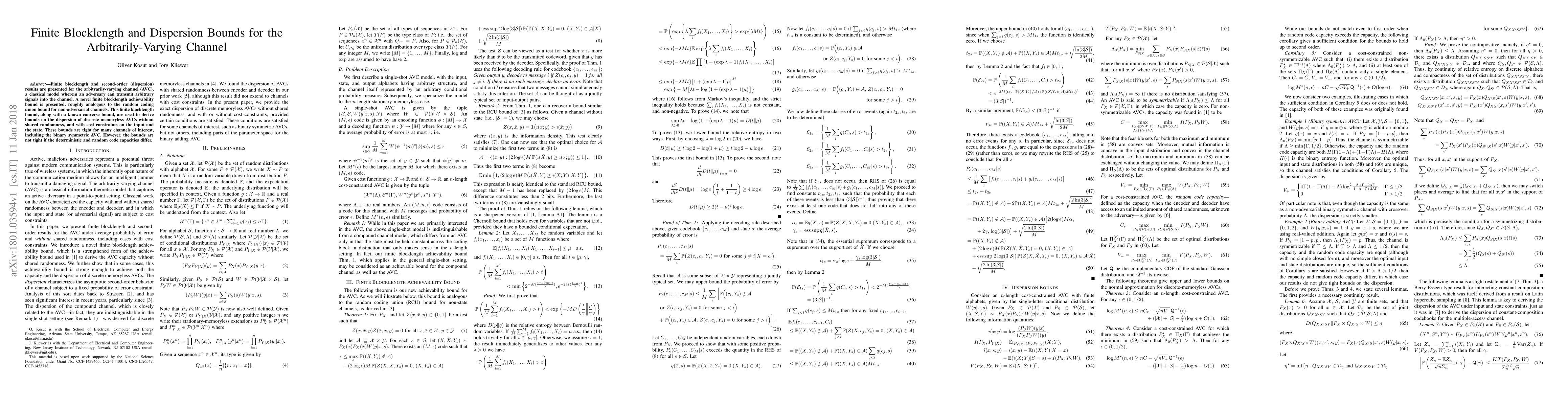 Finite blocklength and second-order (dispersion) results are presented for the arbitrarily-varying channel (AVC), a classical model wherein an adversary can transmit arbitrary signals into the channel. A novel finite blocklength achievability bound is presented, roughly analogous to the random coding union bound for non-adversarial channels. This finite blocklength bound, along with a known converse bound, is used to derive bounds on the dispersion of discrete memoryless AVCs without shared randomness, and with cost constraints on the input and the state. These bounds are tight for many channels of interest, including the binary symmetric AVC. However, the bounds are not tight if the deterministic and random code capacities differ.