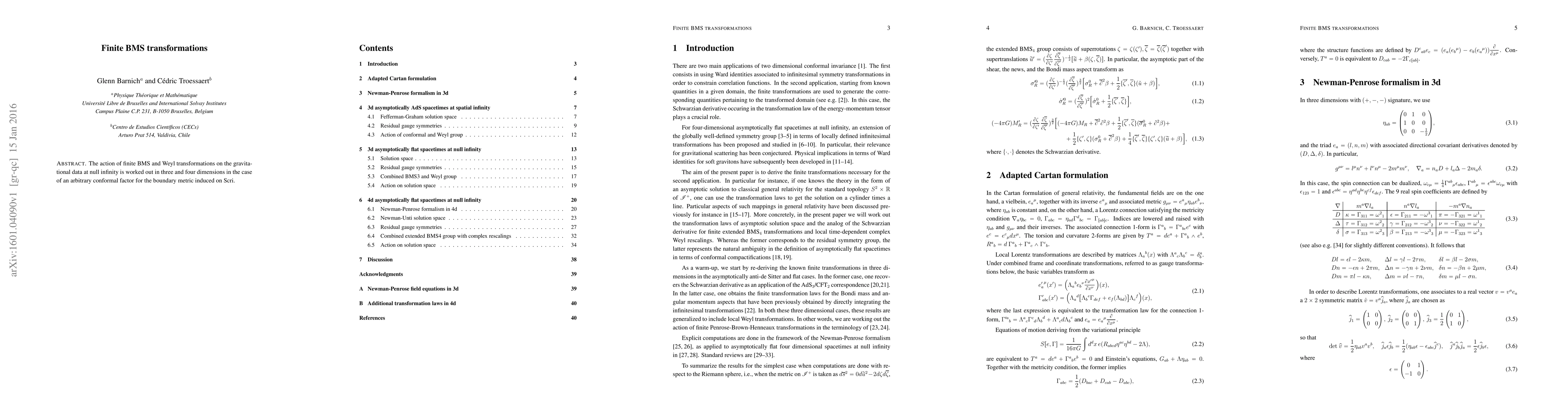 The action of finite BMS and Weyl transformations on the gravitational data at null infinity is worked out in three and four dimensions in the case of an arbitrary conformal factor for the boundary metric induced on Scri.