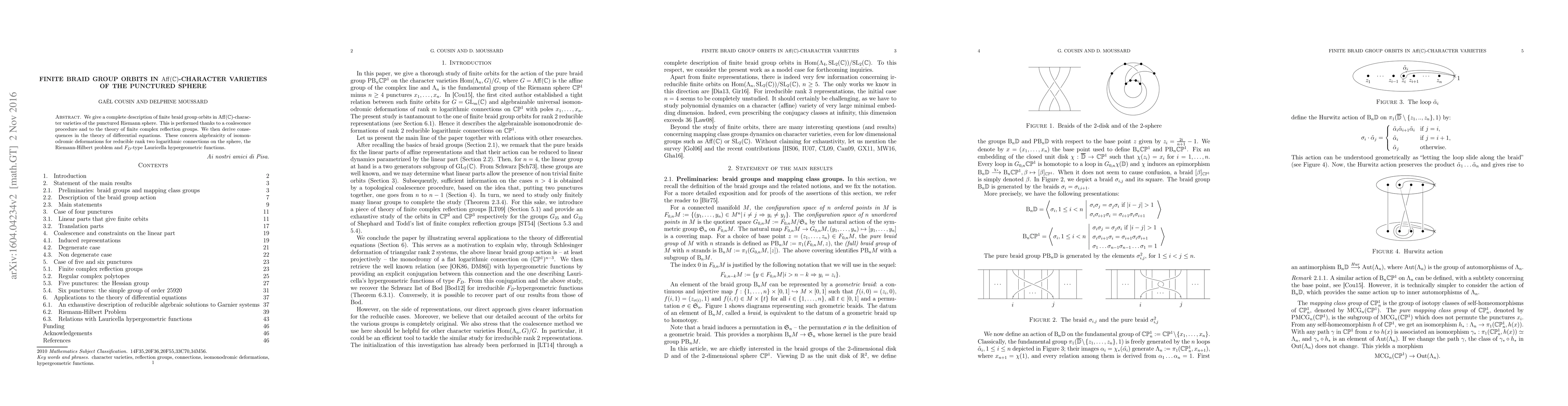 The research provides a comprehensive account of finite braid group orbits within Aff(C)-character varieties of the punctured sphere, leveraging a coalescence procedure and finite complex reflection group theory, with implications for algebraicity in isomonodromic deformations and connections to the Riemann-Hilbert problem and Lauricella hypergeometric functions.