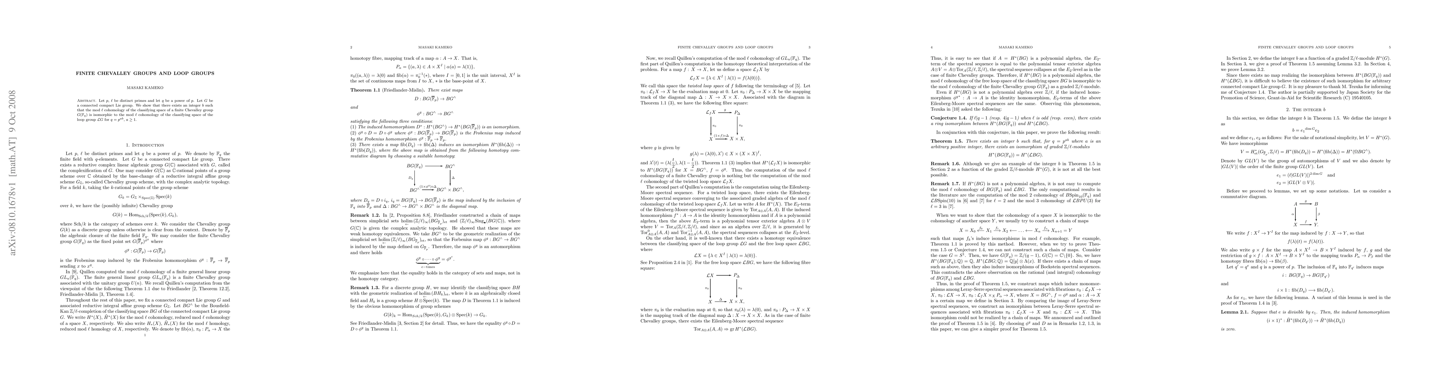 The paper introduces and proves properties of an integer b that establishes cohomology isomorphisms between finite Chevalley groups and loop groups, advancing the understanding of algebraic structures in cohomology theory.