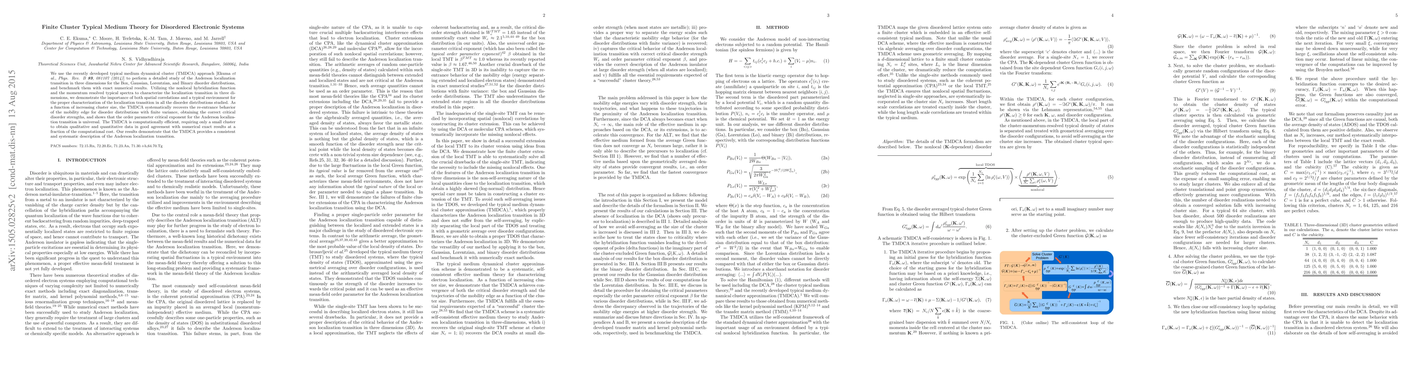 The paper employs the typical medium dynamical cluster approach (TMDCA) to study the Anderson localization transition across various disorder distributions, showing the method's efficiency and accuracy in capturing localization transitions. The results highlight the significance of spatial correlations and a typical environment in characterizing the transition, and the method's ability to recover re-entrant behavior and critical disorder strengths.