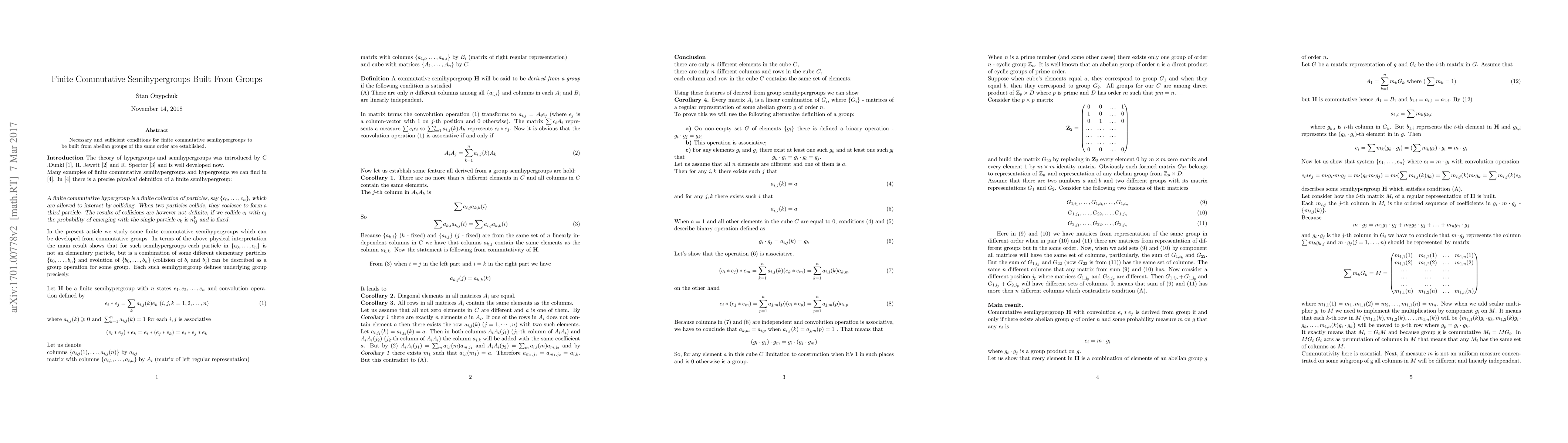 Necessary and sufficient conditions for finite commutative semihypergroups to be built from abelian groups of the same order are established.