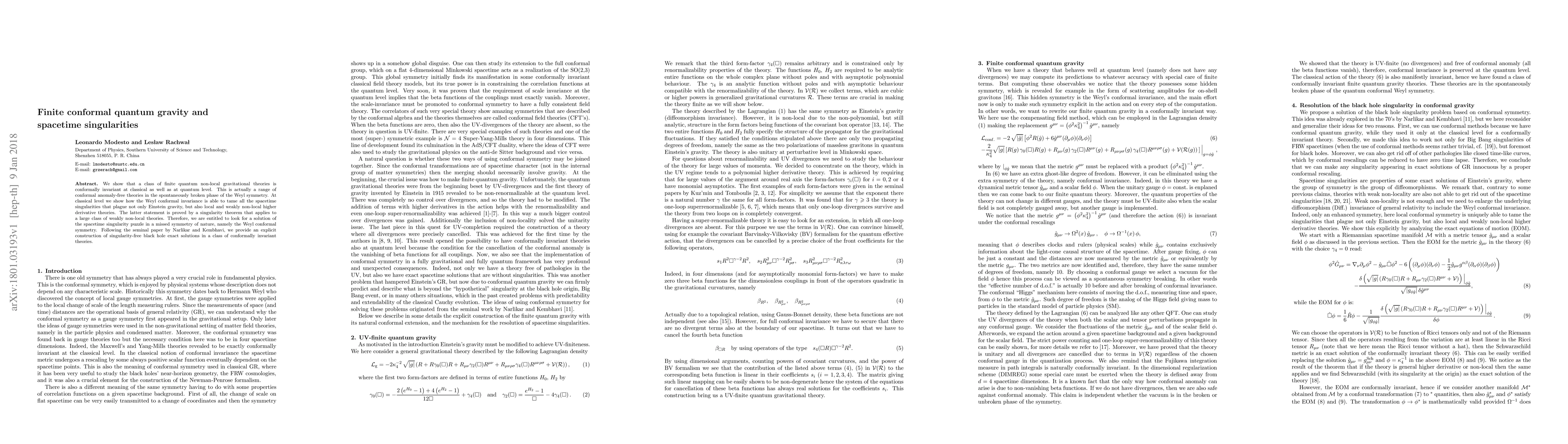 This paper demonstrates that certain finite quantum non-local gravitational theories are conformally invariant, effectively resolving spacetime singularities that affect Einstein gravity and other higher derivative theories. It constructs singularity-free black hole solutions using Weyl conformal symmetry, suggesting a potential resolution to the spacetime singularity puzzle.