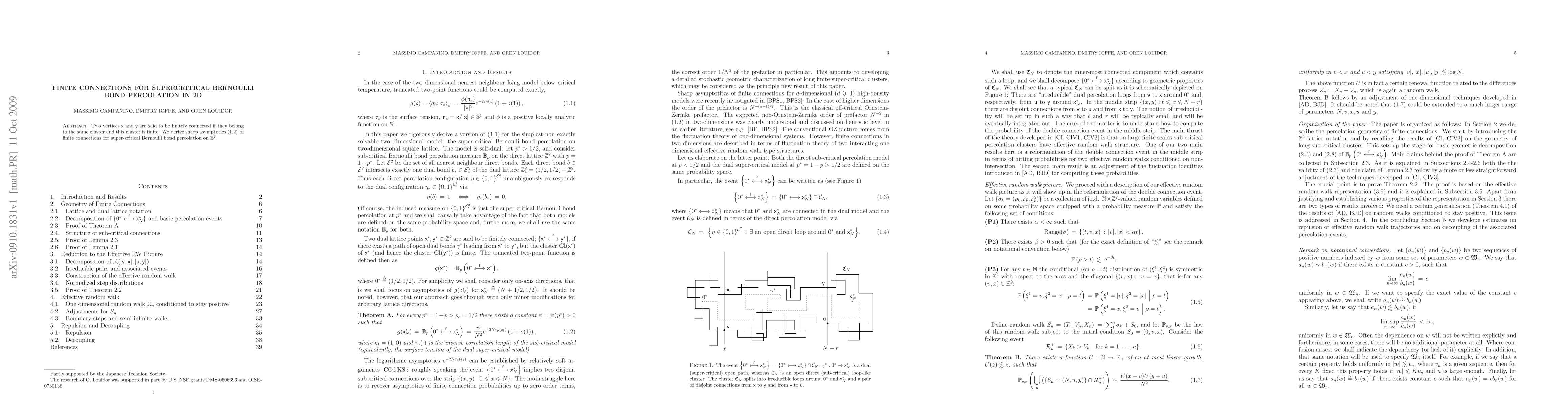 Summary: This research provides precise asymptotic estimates for the probabilities of two vertices being finitely connected within the same finite cluster in supercritical Bernoulli bond percolation on a two-dimensional lattice.