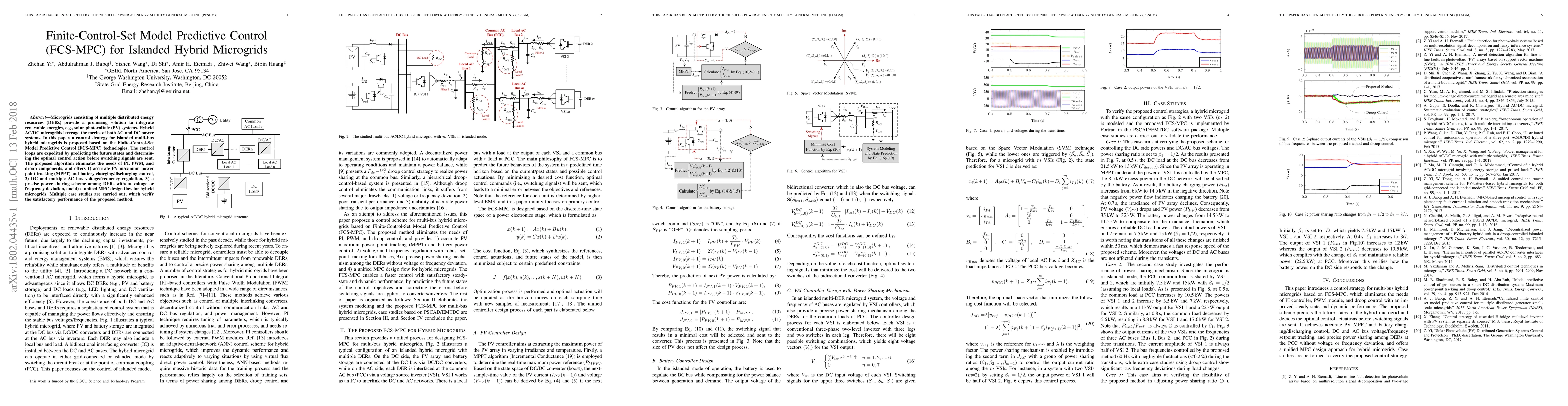 This paper proposes a Finite-Control-Set Model Predictive Control (FCS-MPC) strategy for islanded hybrid microgrids, achieving accurate PV MPPT, voltage/frequency regulation, and precise power sharing among distributed energy resources without traditional control components. Case studies confirm the method's satisfactory performance.
