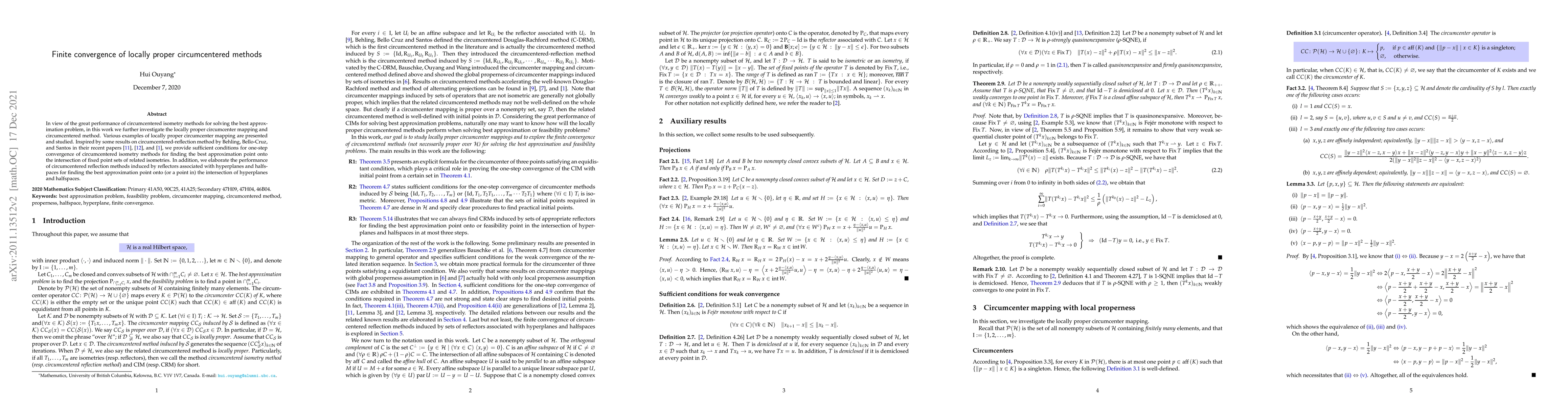 This paper investigates locally proper circumcentered methods for solving optimization problems and provides sufficient conditions for one-step convergence of these methods in finding the best approximation point onto intersection sets. It also examines the performance of circumcentered reflection methods induced by hyperplanes and halfspaces.