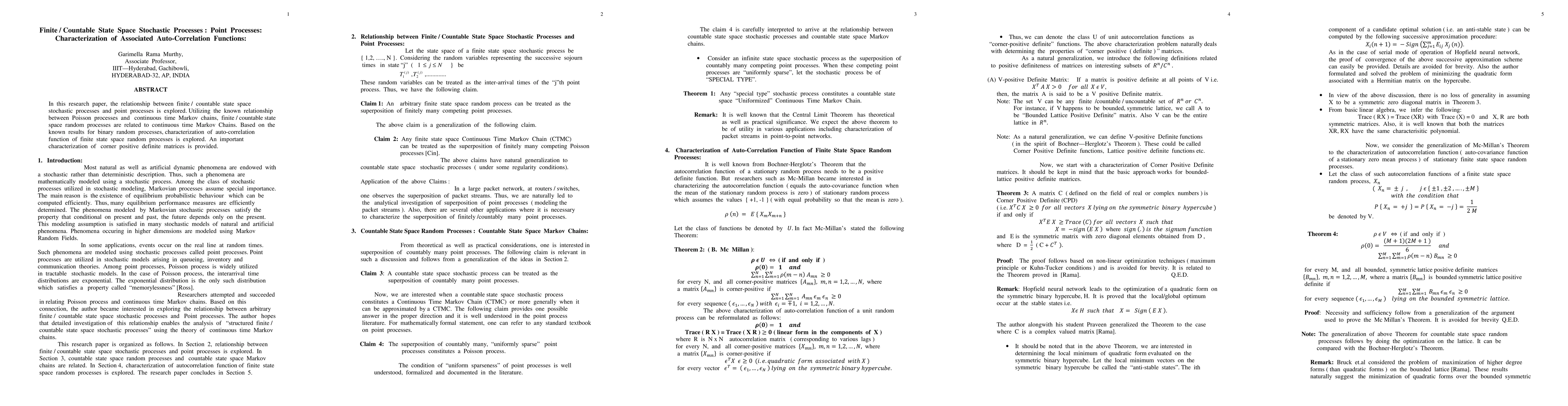 This paper explores the relationship between finite/state space stochastic processes and point processes, providing a characterization of auto-correlation functions for finite state space random processes.
