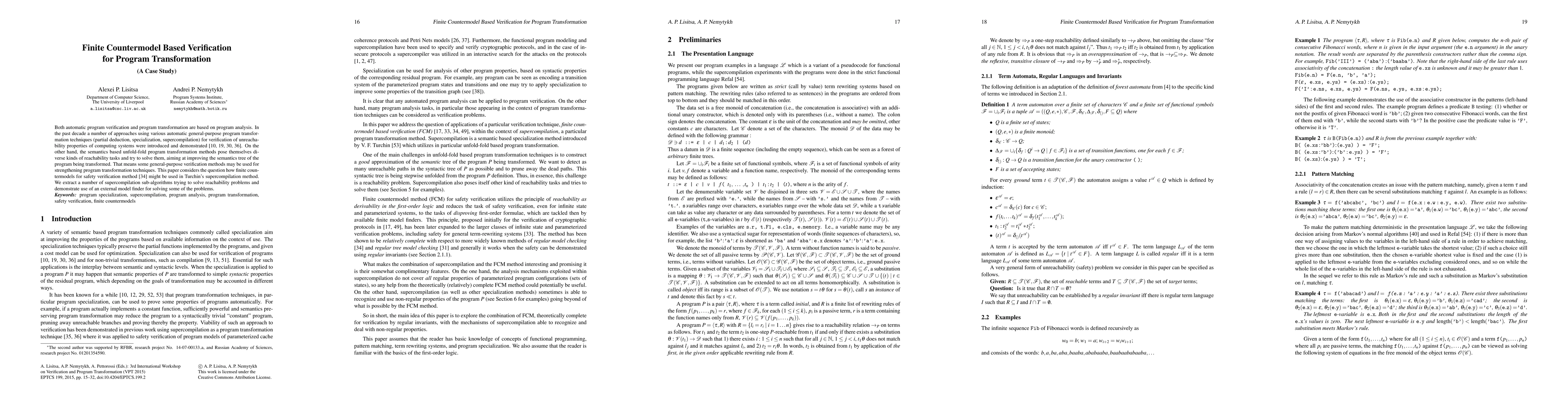 Both automatic program verification and program transformation are based on program analysis. In the past decade a number of approaches using various automatic general-purpose program transformation techniques (partial deduction, specialization, supercompilation) for verification of unreachability properties of computing systems were introduced and demonstrated. On the other hand, the semantics based unfold-fold program transformation methods pose themselves diverse kinds of reachability tasks and try to solve them, aiming at improving the semantics tree of the program being transformed. That means some general-purpose verification methods may be used for strengthening program transformation techniques. This paper considers the question how finite countermodels for safety verification method might be used in Turchin's supercompilation method. We extract a number of supercompilation sub-algorithms trying to solve reachability problems and demonstrate use of an external countermodel finder for solving some of the problems.