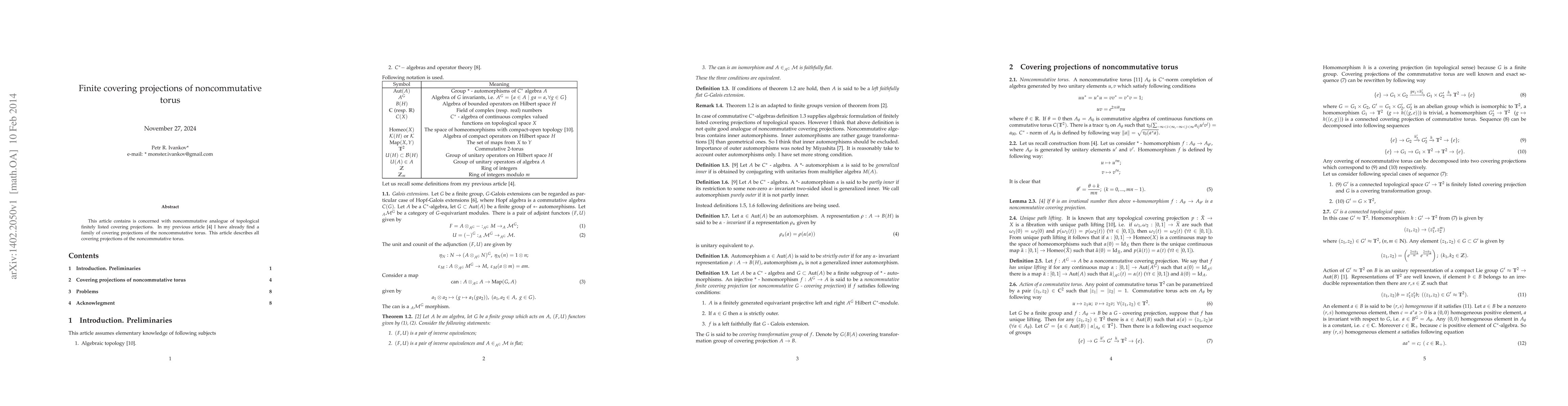 Summary: This paper explores the noncommutative analogue of topological finite covering projections, detailing a comprehensive enumeration of all such covering projections for the noncommutative torus, building on prior findings from the author's previous work.