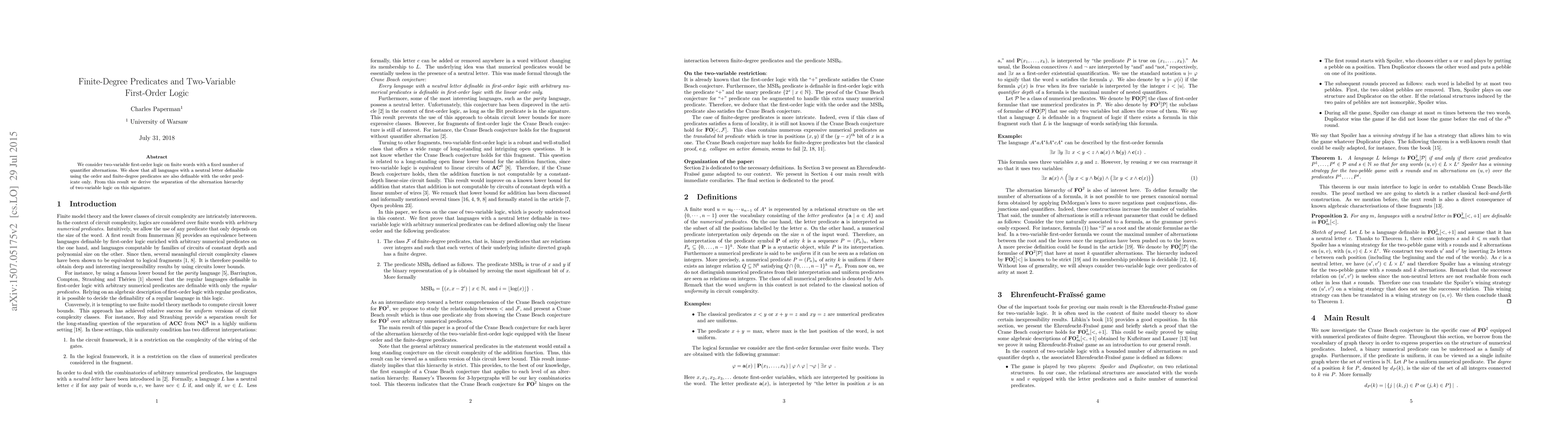 This paper demonstrates that two-variable first-order logic on finite words with finite-degree predicates can define languages using only order predicates when a neutral letter is present, leading to a separation in the alternation hierarchy of two-variable logic.