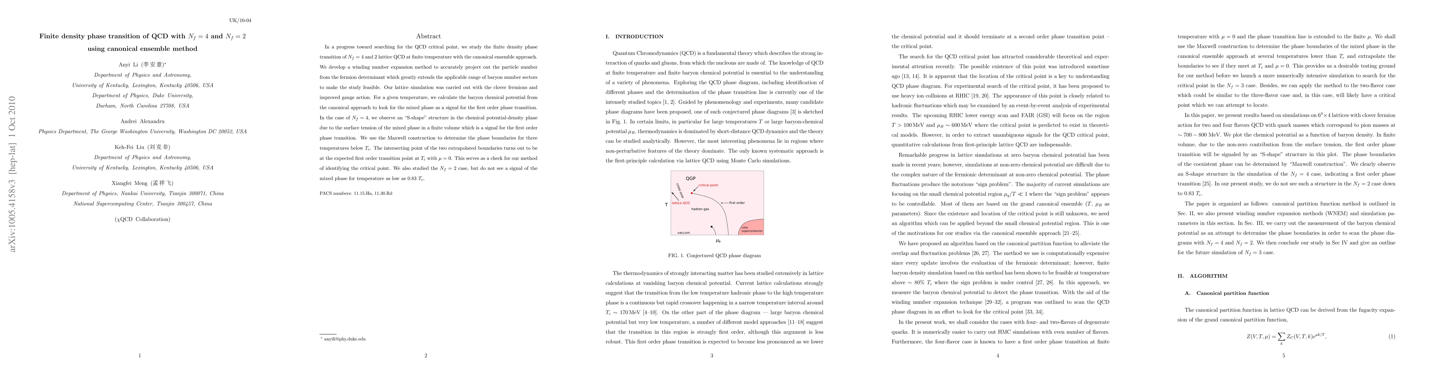 Researchers studied a phase transition in lattice QCD with 4 and 2 flavors of fermions at finite temperature using the canonical ensemble method, finding evidence for a first-order transition at $T_c$.
