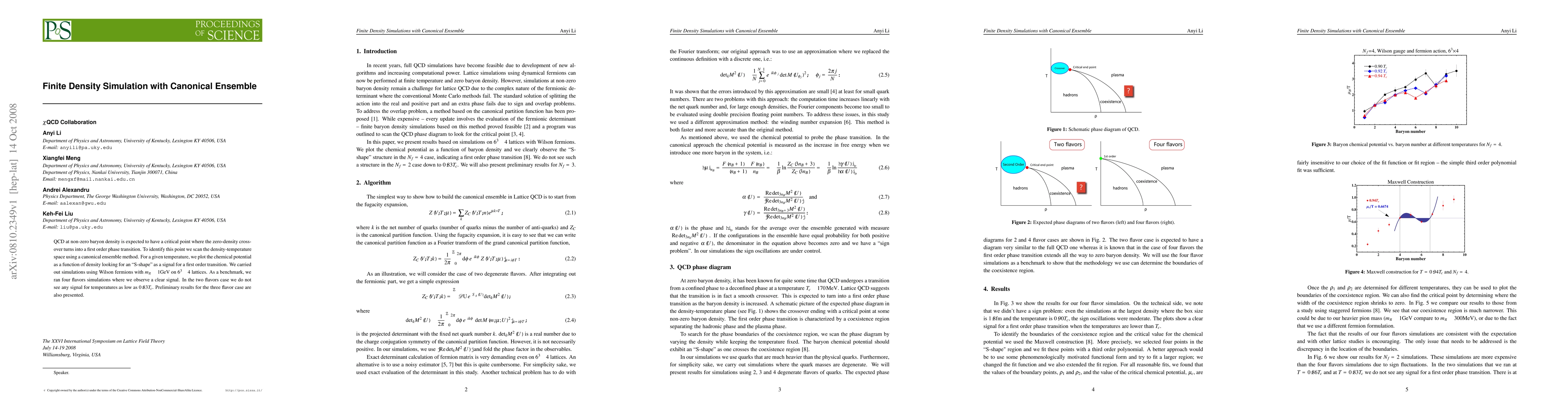 This study explores QCD at non-zero baryon density using canonical ensemble simulations to identify a critical point where a phase transition occurs. Simulations with Wilson fermions indicate a clear signal for a first-order transition in four-flavor cases, but no signal in two-flavor cases below $0.83 T_c$, and preliminary results for three flavors are also reported.