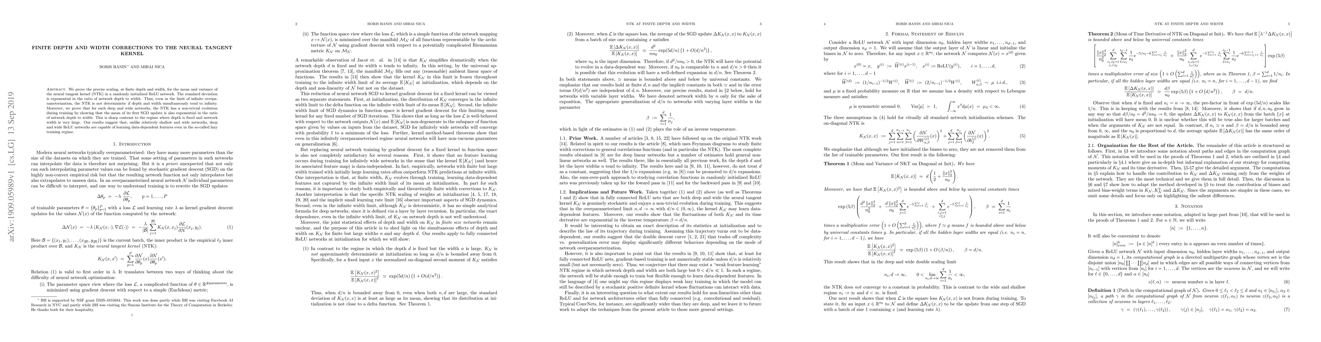 We prove the precise scaling, at finite depth and width, for the mean and variance of the neural tangent kernel (NTK) in a randomly initialized ReLU network. The standard deviation is exponential in the ratio of network depth to width. Thus, even in the limit of infinite overparameterization, the NTK is not deterministic if depth and width simultaneously tend to infinity. Moreover, we prove that for such deep and wide networks, the NTK has a non-trivial evolution during training by showing that the mean of its first SGD update is also exponential in the ratio of network depth to width. This is sharp contrast to the regime where depth is fixed and network width is very large. Our results suggest that, unlike relatively shallow and wide networks, deep and wide ReLU networks are capable of learning data-dependent features even in the so-called lazy training regime.