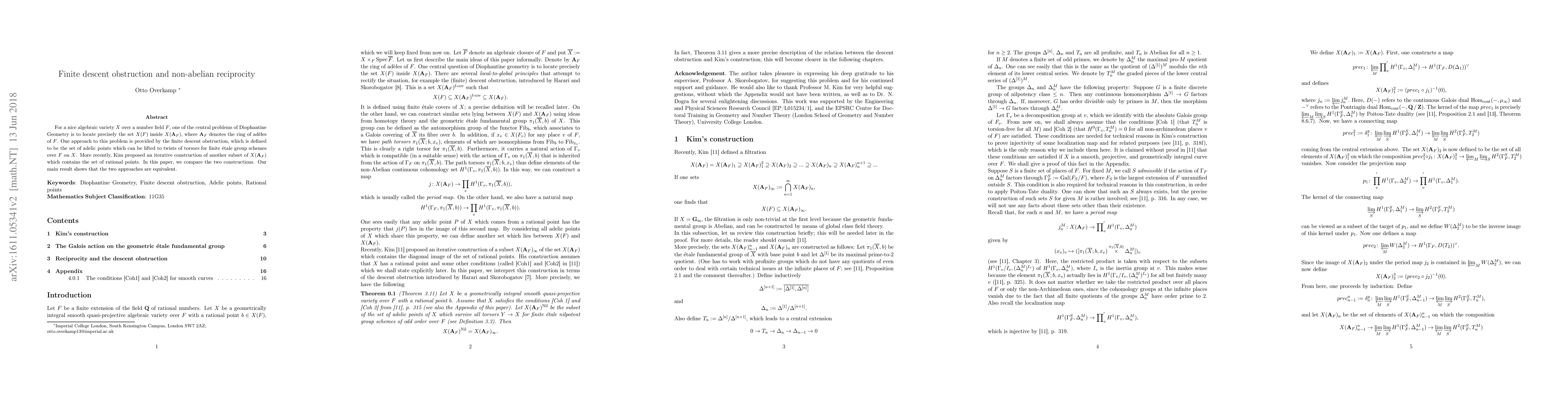 For a nice algebraic variety $X$ over a number field $F$, one of the central problems of Diophantine Geometry is to locate precisely the set $X(F)$ inside $X(\A_F)$, where $\A_F$ denotes the ring of ad\`eles of $F$. One approach to this problem is provided by the finite descent obstruction, which is defined to be the set of adelic points which can be lifted to twists of torsors for (certain) finite \'etale group schemes over $F$ on $X$. More recently, Kim proposed an iterative construction of another subset of $X(\A_F)$ which contains the set of rational points. In this paper, we compare the two constructions. Our main result shows that the two approaches are essentially equivalent.
