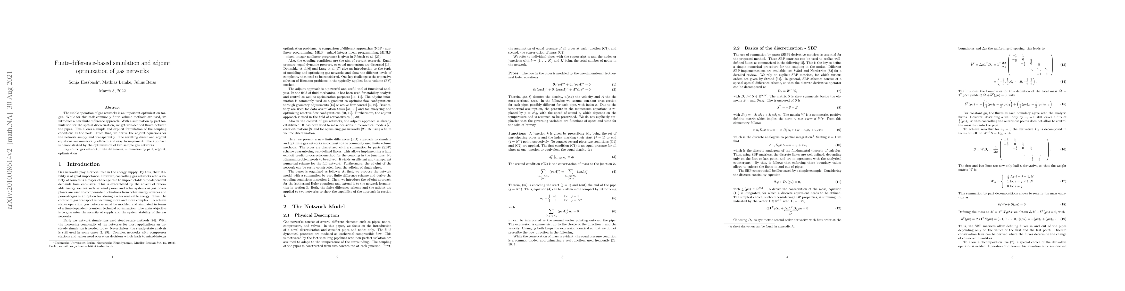 Researchers developed a new finite difference approach for simulating and optimizing gas networks, providing efficient and transparent adjoint equations that can efficiently solve network optimization problems.