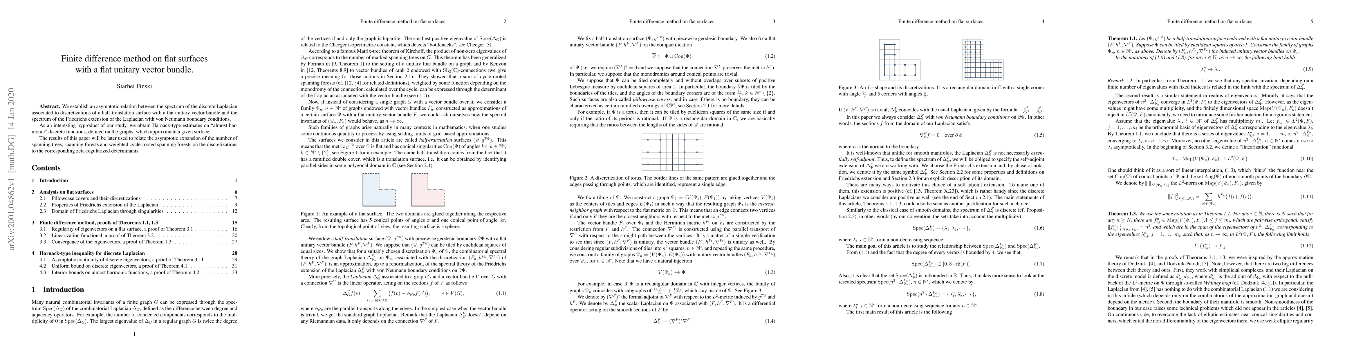 This paper establishes an asymptotic link between the spectrum of the discrete Laplacian on half-translation surfaces with a flat unitary vector bundle and the Friedrichs extension with von Neumann boundary conditions. It also yields Harnack-type estimates for "almost harmonic" discrete functions on these graphs and sets the stage for future connections between graph structures and zeta-regularized determinants.
