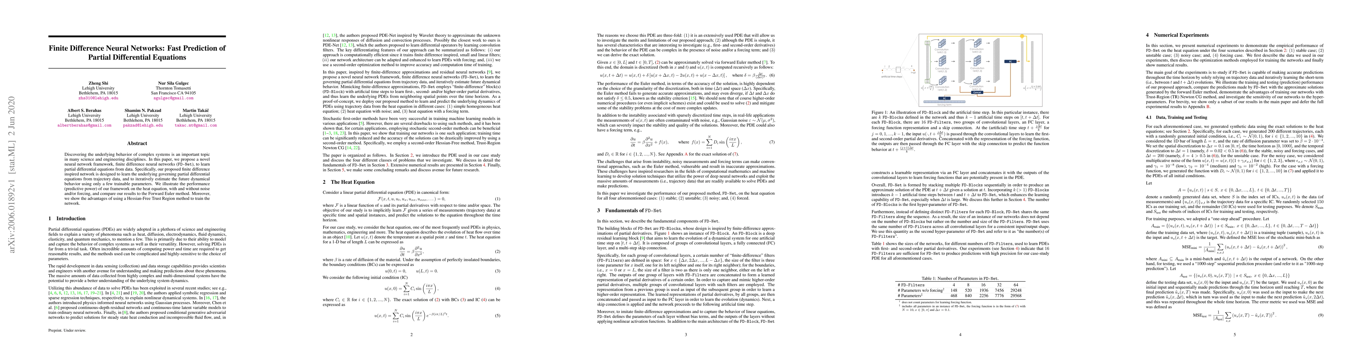 This paper introduces finite difference neural networks (FDNet) to learn and predict partial differential equations (PDEs) from data, demonstrating its effectiveness on the heat equation. The proposed framework uses a few trainable parameters and is trained using a Hessian-Free Trust Region method, outperforming the Forward Euler method in predictive accuracy.