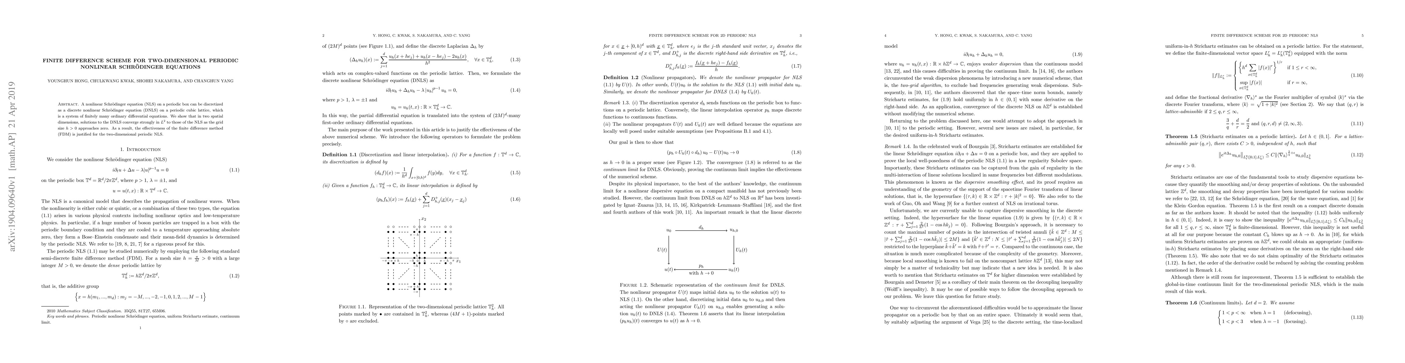 This paper presents a finite difference scheme for discretizing two-dimensional periodic nonlinear Schrödinger equations, demonstrating strong convergence in $L^2$ as the grid size approaches zero, thereby validating the finite difference method for solving such equations.