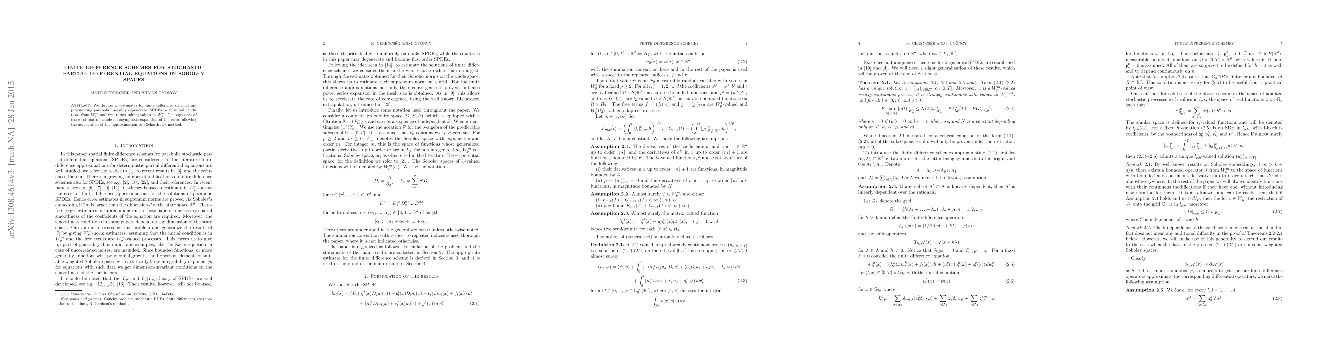 We discuss $L_p$-estimates for finite difference schemes approximating parabolic, possibly degenerate, SPDEs, with initial conditions from $W^m_p$ and free terms taking values in $W^m_p.$ Consequences of these estimates include an asymptotic expansion of the error, allowing the acceleration of the approximation by Richardson's method.