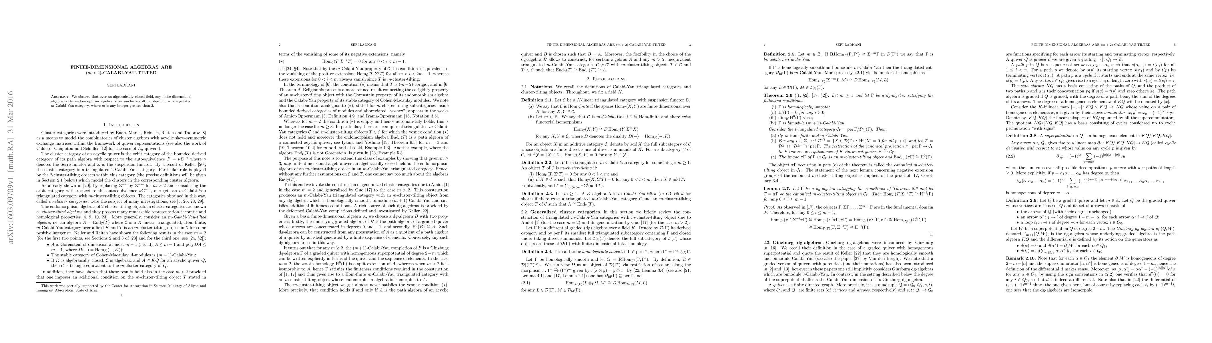 We observe that over an algebraically closed field, any finite-dimensional algebra is the endomorphism algebra of an m-cluster-tilting object in a triangulated m-Calabi-Yau category, where m is any integer greater than 2.