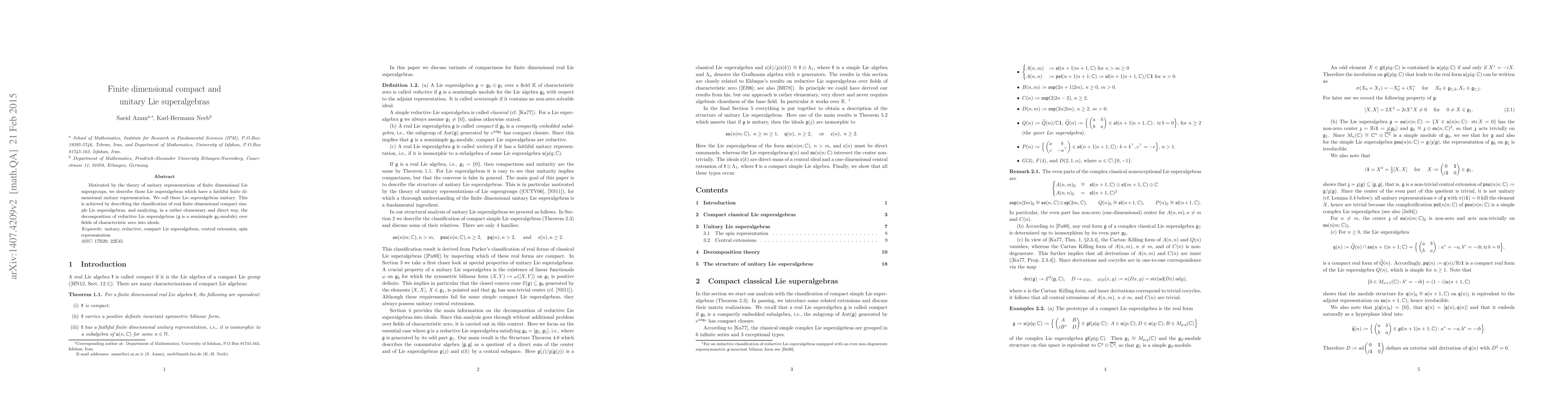 This paper classifies finite dimensional compact simple Lie superalgebras and describes unitary Lie superalgebras, which possess faithful finite dimensional unitary representations, by analyzing the decomposition of reductive Lie superalgebras over fields of characteristic zero.