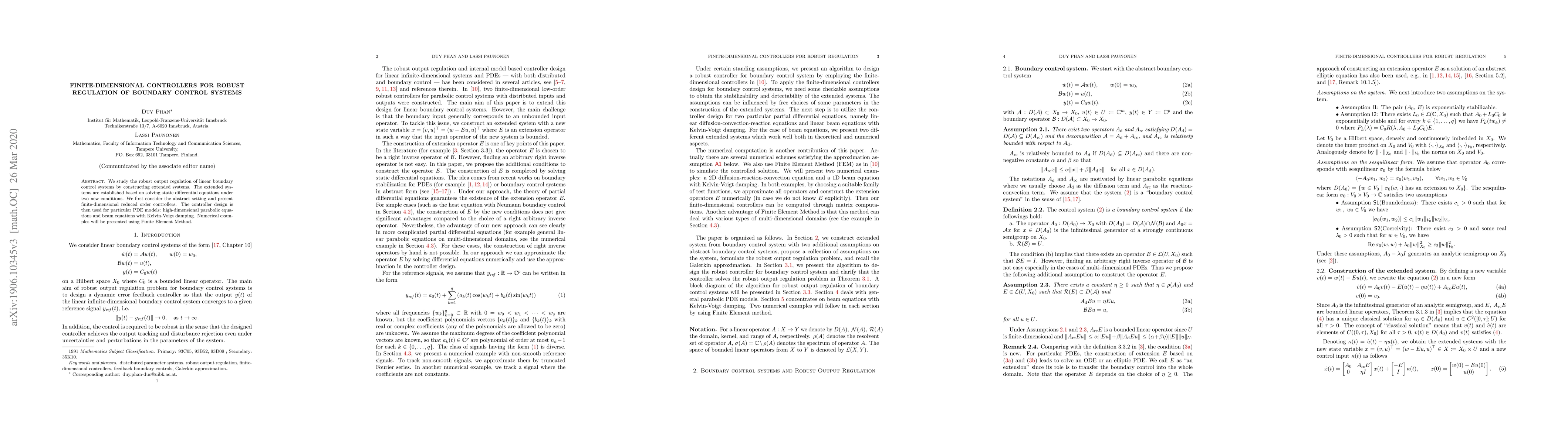 This paper develops finite-dimensional controllers for robust regulation of boundary control systems by constructing extended systems based on solving static differential equations under new conditions. The approach is demonstrated for high-dimensional parabolic and beam equations with Kelvin-Voigt damping, validated through numerical examples using the Finite Element Method.