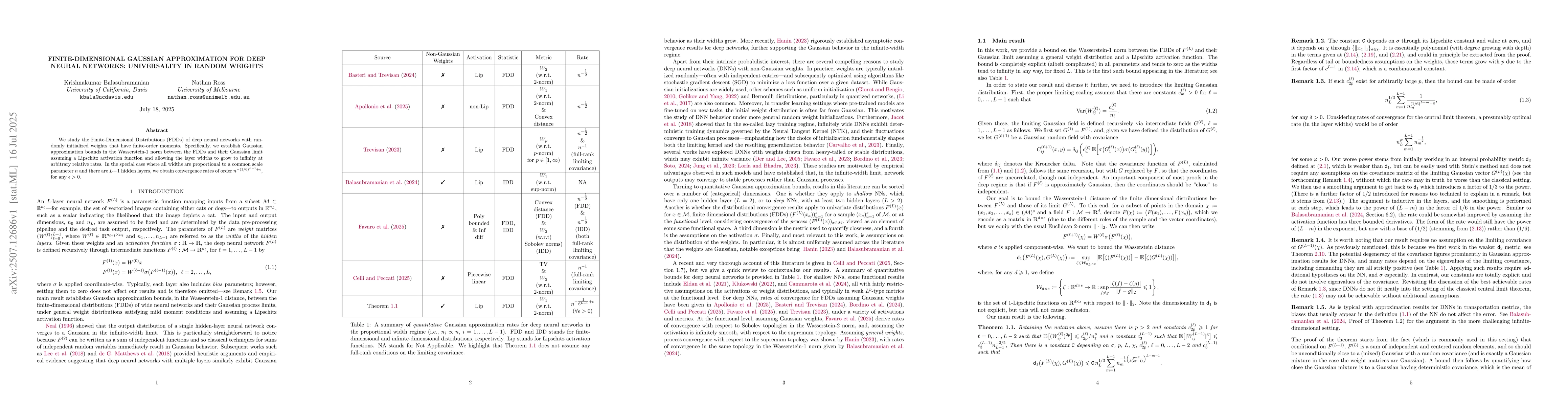We study the Finite-Dimensional Distributions (FDDs) of deep neural networks with randomly initialized weights that have finite-order moments. Specifically, we establish Gaussian approximation bounds in the Wasserstein-$1$ norm between the FDDs and their Gaussian limit assuming a Lipschitz activation function and allowing the layer widths to grow to infinity at arbitrary relative rates. In the special case where all widths are proportional to a common scale parameter $n$ and there are $L-1$ hidden layers, we obtain convergence rates of order $n^{-({1}/{6})^{L-1} + \epsilon}$, for any $\epsilon > 0$.