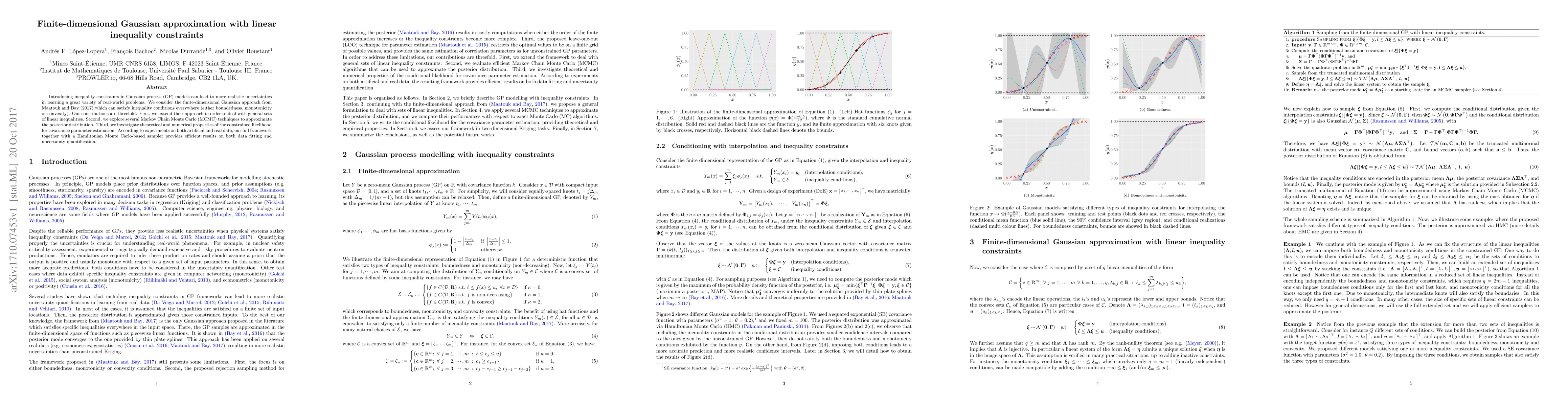 This paper extends the finite-dimensional Gaussian approximation method for Gaussian processes to handle general linear inequality constraints, employing MCMC techniques for posterior approximation and investigating the theoretical and numerical properties of the constrained likelihood for covariance parameter estimation. Experiments show effective data fitting and uncertainty quantification using a Hamiltonian Monte Carlo-based sampler.