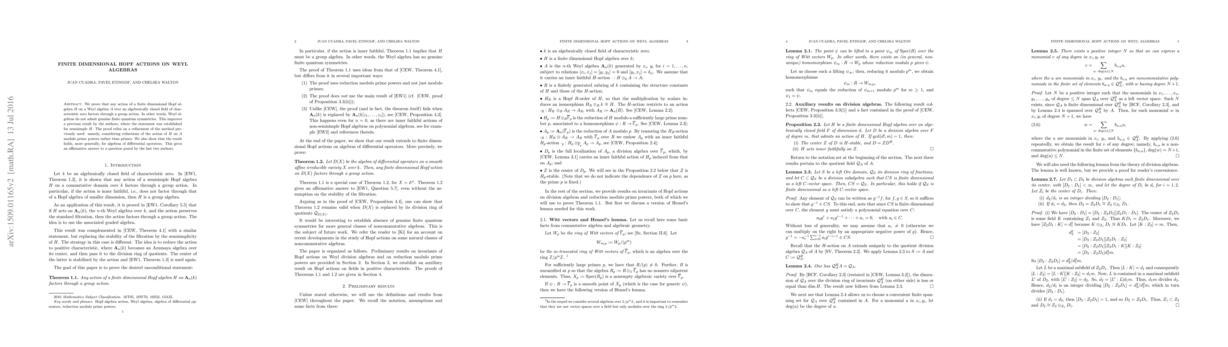 Researchers prove that finite dimensional Hopf actions on Weyl algebras factor through group actions, meaning they cannot represent genuine quantum symmetries.