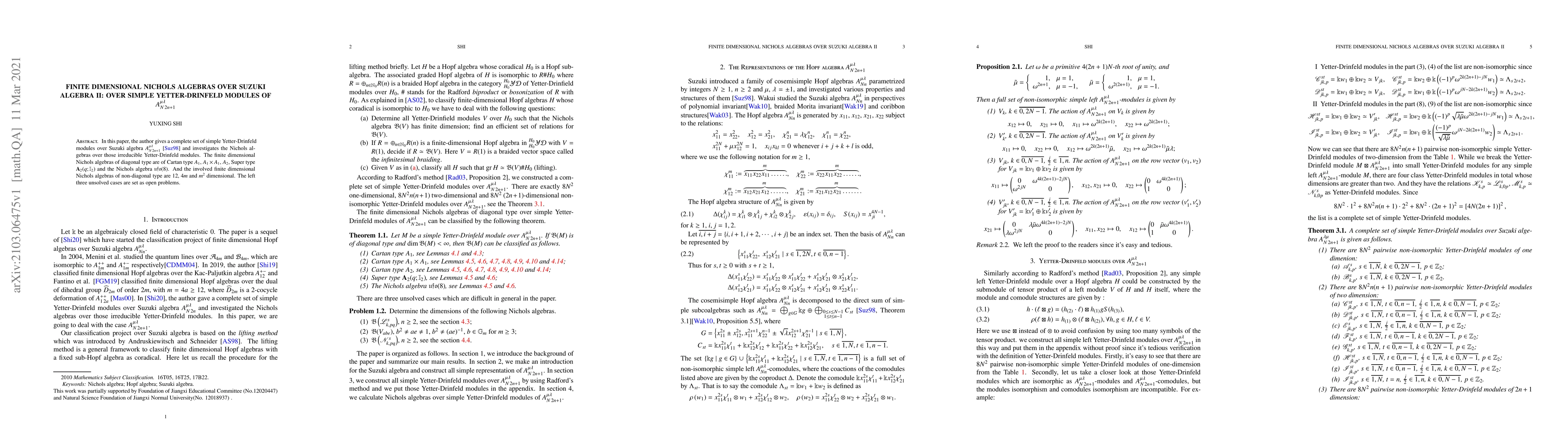 This paper identifies simple Yetter-Drinfeld modules over the Suzuki algebra $A_{N\,2n+1}^{\mu\lambda}$ and examines the corresponding Nichols algebras. It concludes with Nichols algebras of diagonal types including $A_1$, $A_1\times A_1$, $A_2$, ${A}_{2}(q;I_2)$, and $\mathfrak{ufo}(8)$, along with non-diagonal types of dimensions $12$, $4m$, and $m^2$, leaving three unresolved cases for future investigation.