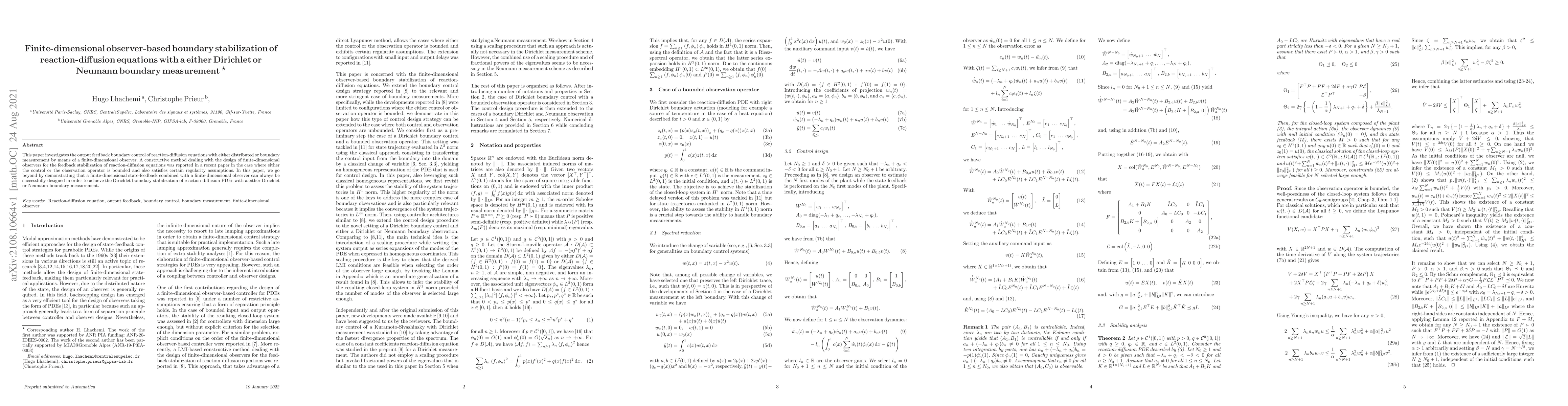 This paper presents a method for the output feedback boundary stabilization of reaction-diffusion equations using finite-dimensional observers. It successfully designs state-feedback and observers to achieve Dirichlet boundary stabilization with either Dirichlet or Neumann boundary measurements.