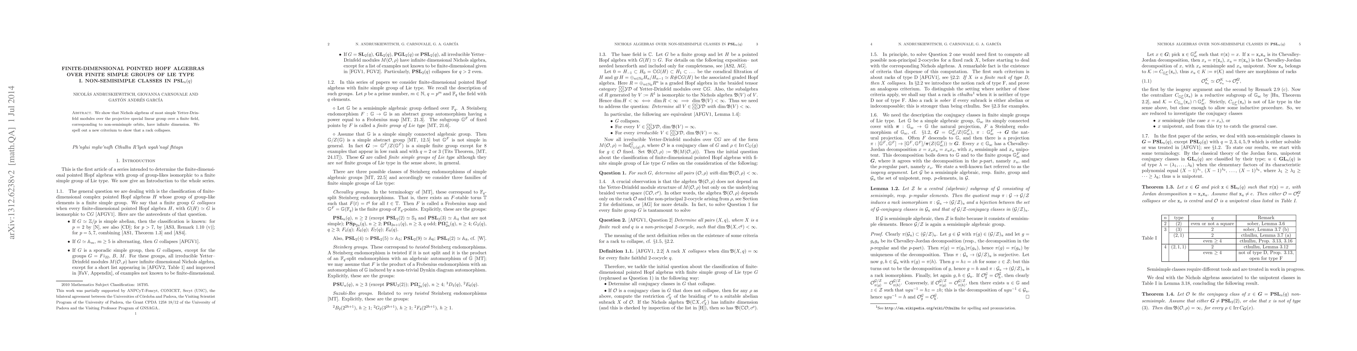 Summary: Research reveals that Nichols algebras for non-semisimple Yetter-Drinfeld modules over PSL(n,q) exhibit infinite dimensions, and introduces a criterion for determining when a rack collapses.