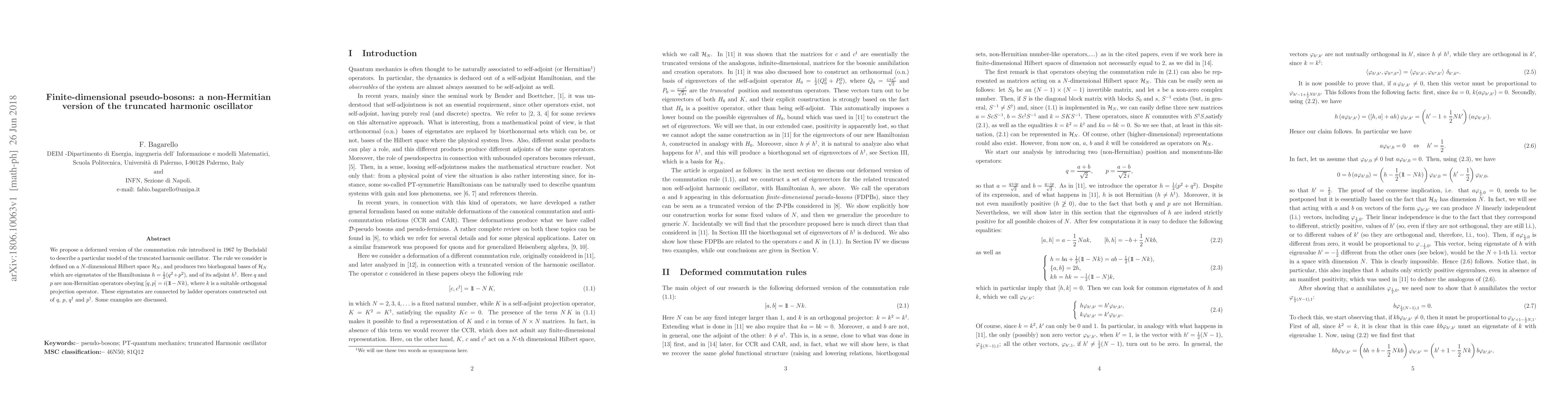 We propose a deformed version of the commutation rule introduced in 1967 by Buchdahl to describe a particular model of the truncated harmonic oscillator. The rule we consider is defined on a $N$-dimensional Hilbert space $\Hil_N$, and produces two biorhogonal bases of $\Hil_N$ which are eigenstates of the Hamiltonians $h=\frac{1}{2}(q^2+p^2)$, and of its adjoint $h^\dagger$. Here $q$ and $p$ are non-Hermitian operators obeying $[q,p]=i(\1-Nk)$, where $k$ is a suitable orthogonal projection operator. These eigenstates are connected by ladder operators constructed out of $q$, $p$, $q^\dagger$ and $p^\dagger$. Some examples are discussed.