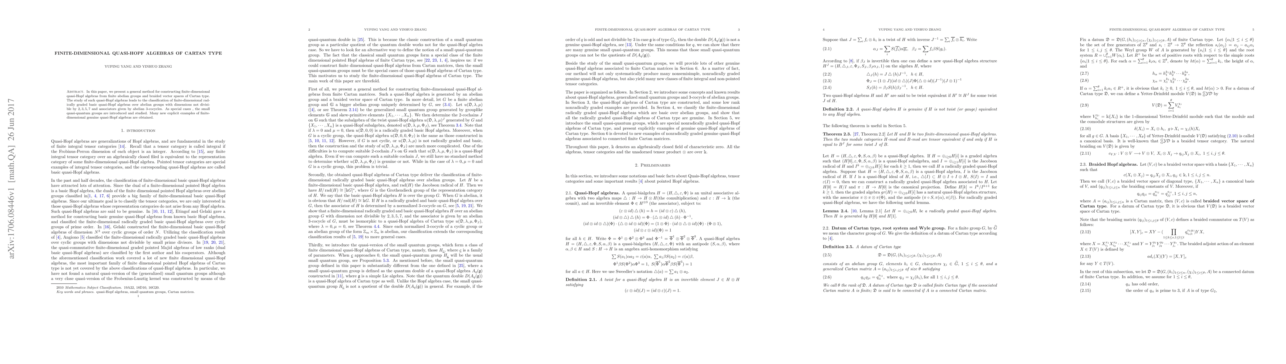 This paper introduces a method to construct finite-dimensional quasi-Hopf algebras from finite abelian groups and braided vector spaces of Cartan type, leading to the classification of specific algebras and the introduction of small quasi-quantum groups with new examples.
