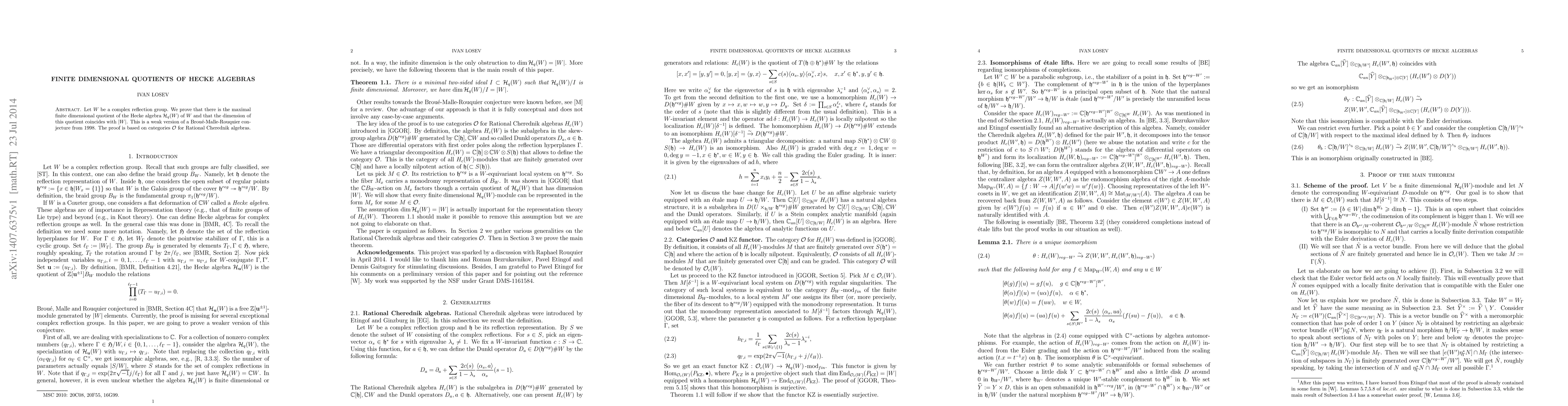 Let W be a complex reflection group. We prove that there is the maximal finite dimensional quotient of the Hecke algebra H_q(W) of W and that the dimension of this quotient coincides with |W|. This is a weak version of a Brou\'e-Malle-Rouquier conjecture from 1998. The proof is based on categories O for Rational Cherednik algebras.