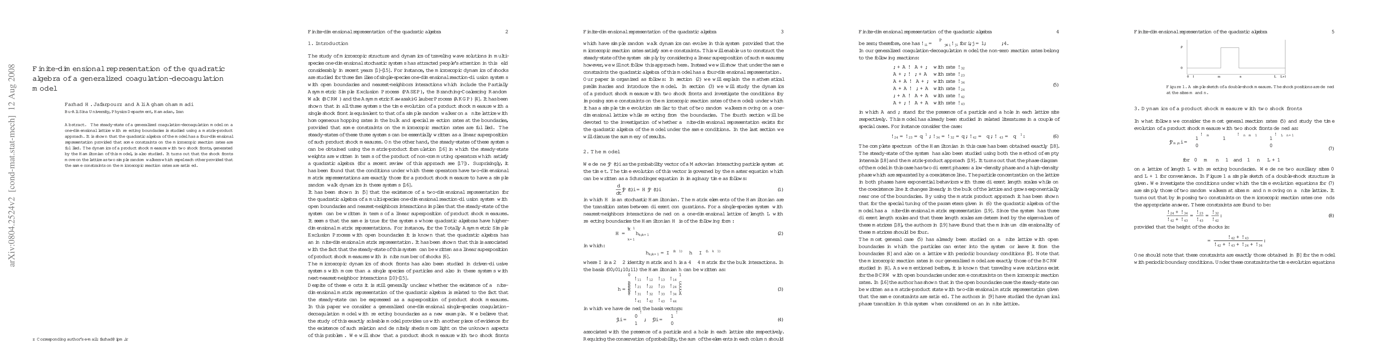 The steady-state of a generalized coagulation-decoagulation model on a one-dimensional lattice with reflecting boundaries is studied using a matrix-product approach. It is shown that the quadratic algebra of the model has a four-dimensional representation provided that some constraints on the microscopic reaction rates are fulfilled. The dynamics of a product shock measure with two shock fronts, generated by the Hamiltonian of this model, is also studied. It turns out that the shock fronts move on the lattice as two simple random walkers which repel each other provided that the same constraints on the microscopic reaction rates are satisfied.