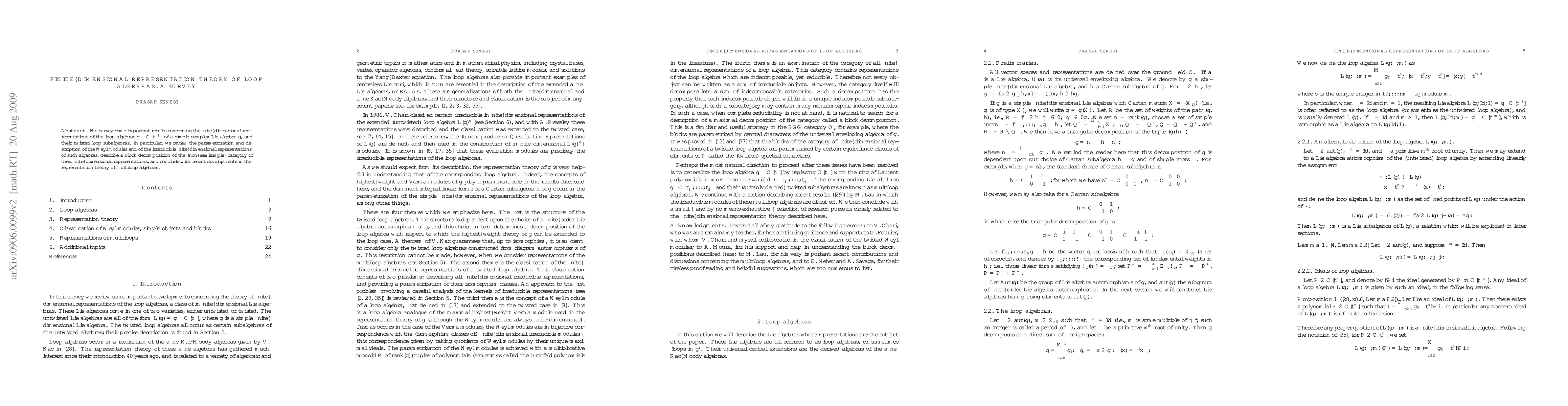 We survey some important results concerning the finite--dimensional representations of the loop algebra of a simple complex Lie algebra, and their twisted loop subalgebras. In particular, we review the parametrization and description of the Weyl modules and of the irreducible finite--dimensional representations of such algebras, describe a block decomposition of the (non--semisimple) category of their finite--dimensional representations, and conclude with recent developments in the representation theory of multiloop algebras.