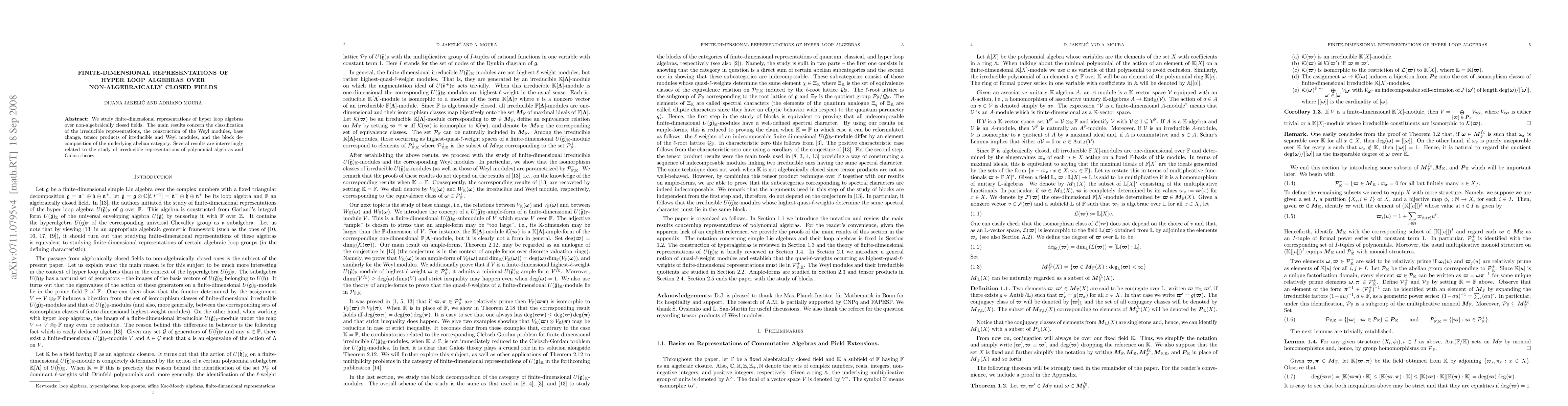 This paper classifies finite-dimensional representations of hyper loop algebras over non-algebraically closed fields, constructs Weyl modules, and explores their tensor products and block decompositions. It also relates these findings to the study of polynomial algebras and Galois theory.