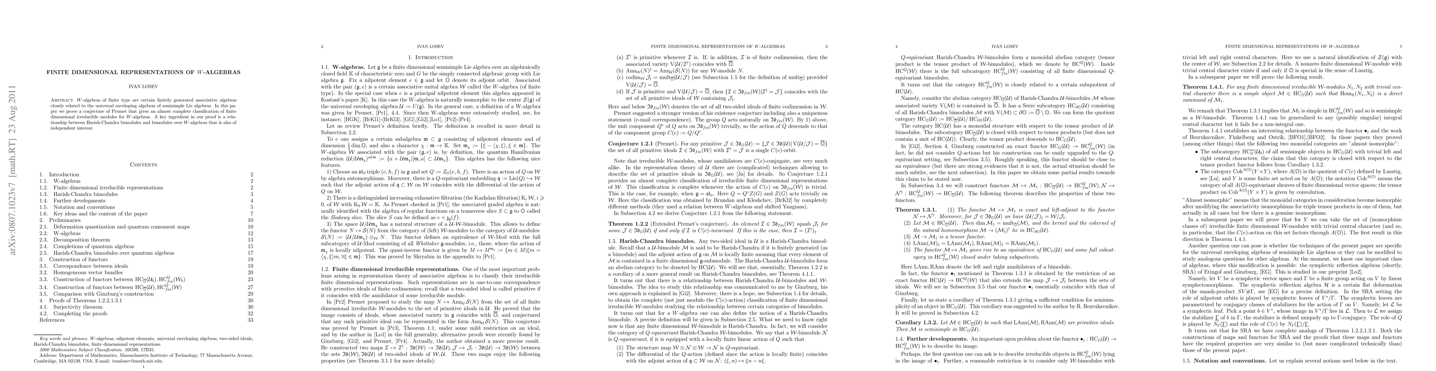 This paper provides a comprehensive classification of finite dimensional irreducible modules for W-algebras, resolving a conjecture by Premet. It also explores the relationship between Harish-Chandra bimodules and bimodules over W-algebras.