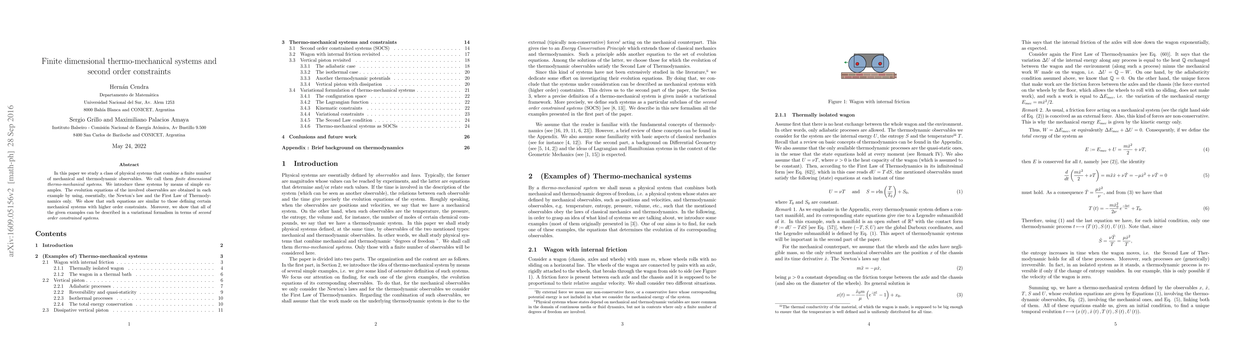This paper explores finite dimensional thermo-mechanical systems, showing they can be described as second-order constrained systems using variational formalism, similar to mechanical systems with higher order constraints.