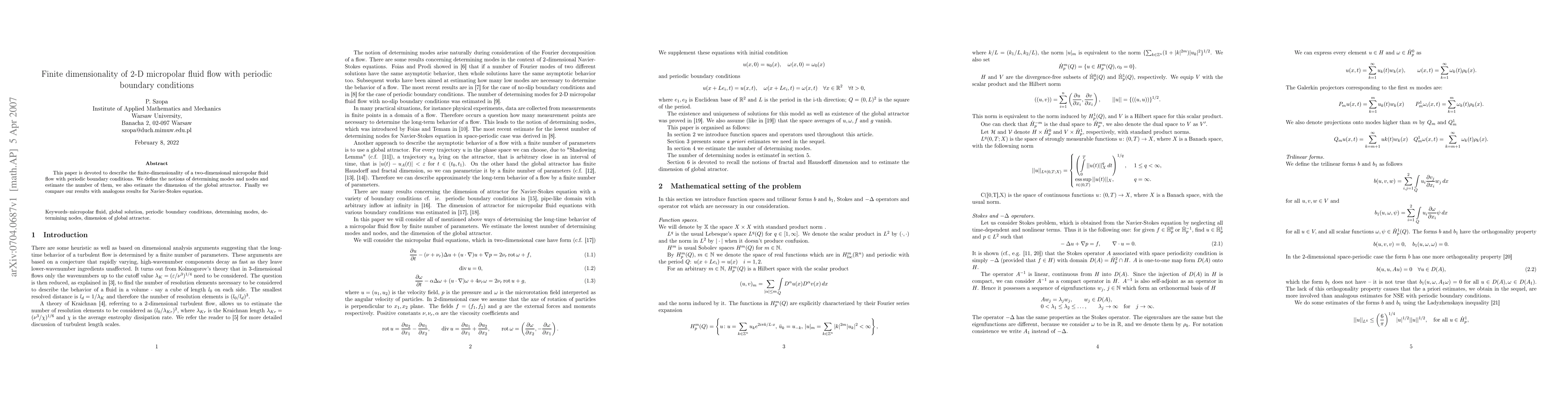 This paper is devoted to describe the finite-dimensionality of a two-dimensional micropolar fluid flow with periodic boundary conditions. We define the notions of determining modes and nodes and estimate the number of them, we also estimate the dimension of the global attractor. Finally we compare our results with analogous results for Navier-Stokes equation.