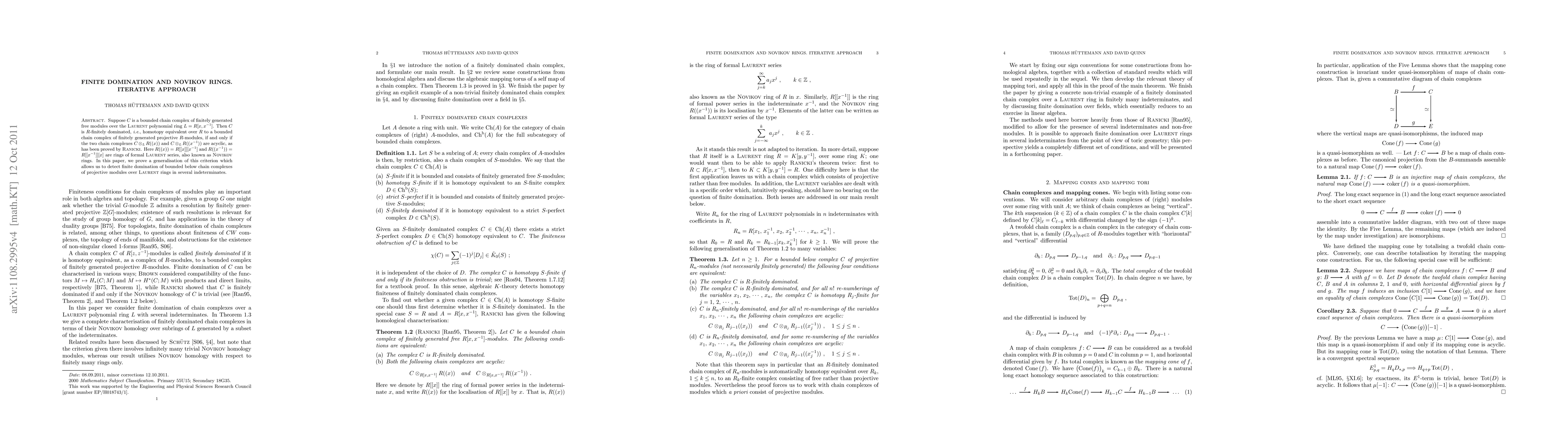 Suppose C is a bounded chain complex of finitely generated free modules over the Laurent polynomial ring L = R[x,1/x]. Then C is R-finitely dominated, ie, homotopy equivalent over R to a bounded chain complex of finitely generated projective R-modules, if and only if the two chain complexes C((x)) and C((1/x)) are acyclic, as has been proved by Ranicki. Here C((x)) is the tensor product over L of C with the Novikov ring R((x)) = R[[x]][1/x] (also known as the ring of formal Laurent series in x); similarly, C((1/x)) is the tensor product over L of C with the Novikov ring R((1/x)) = R[[1/x]][x]. In this paper, we prove a generalisation of this criterion which allows us to detect finite domination of bounded below chain complexes of projective modules over Laurent rings in several indeterminates.
