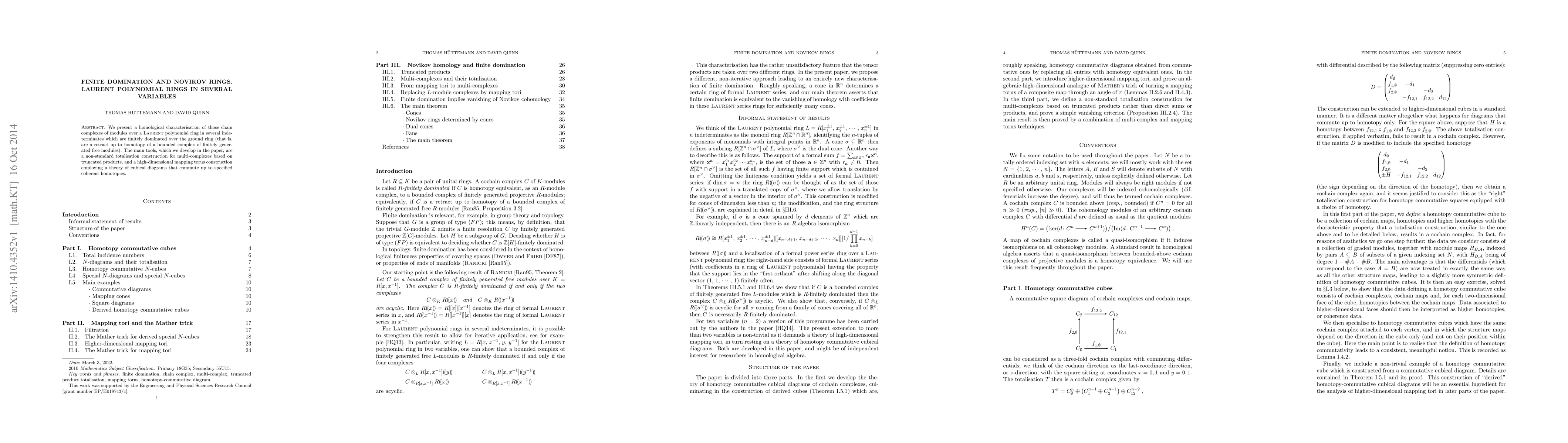 We present a homological characterisation of those chain complexes of modules over a Laurent polynomial ring in several indeterminates which are finitely dominated over the ground ring (that is, are a retract up to homotopy of a bounded complex of finitely generated free modules). The main tools, which we develop in the paper, are a non-standard totalisation construction for multi-complexes based on truncated products, and a high-dimensional mapping torus construction employing a theory of cubical diagrams that commute up to specified coherent homotopies.