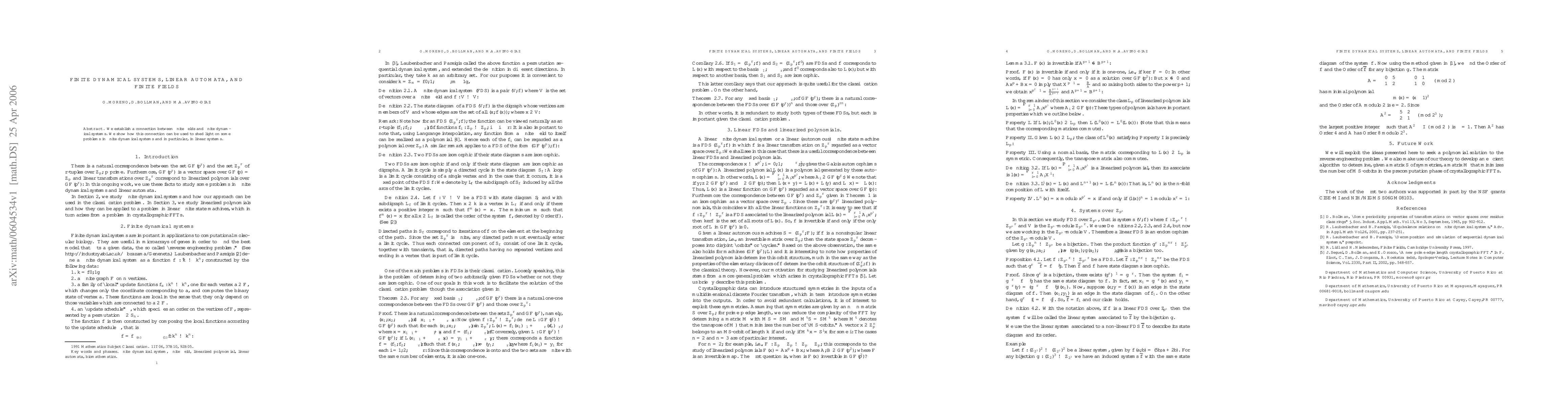 Researchers establish a connection between finite fields and finite dynamical systems, shedding light on problems in linear systems and offering new insights into their behavior.