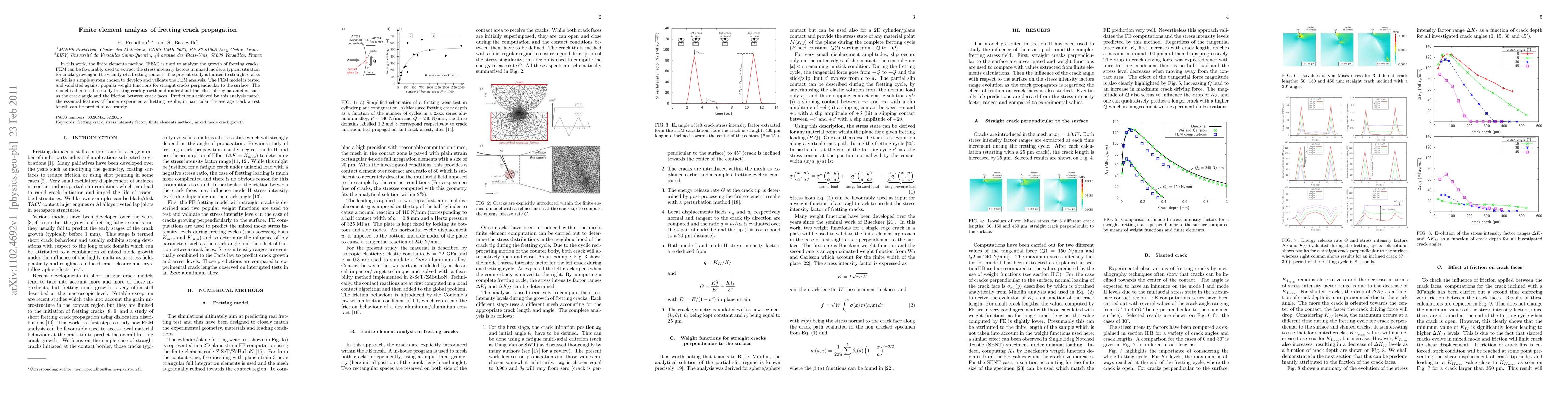 This paper uses finite element analysis (FEM) to study the growth of fretting cracks, focusing on mixed-mode stress intensity factors. The validated FEM model accurately predicts crack growth and the effects of parameters like crack angle and friction, matching experimental results.