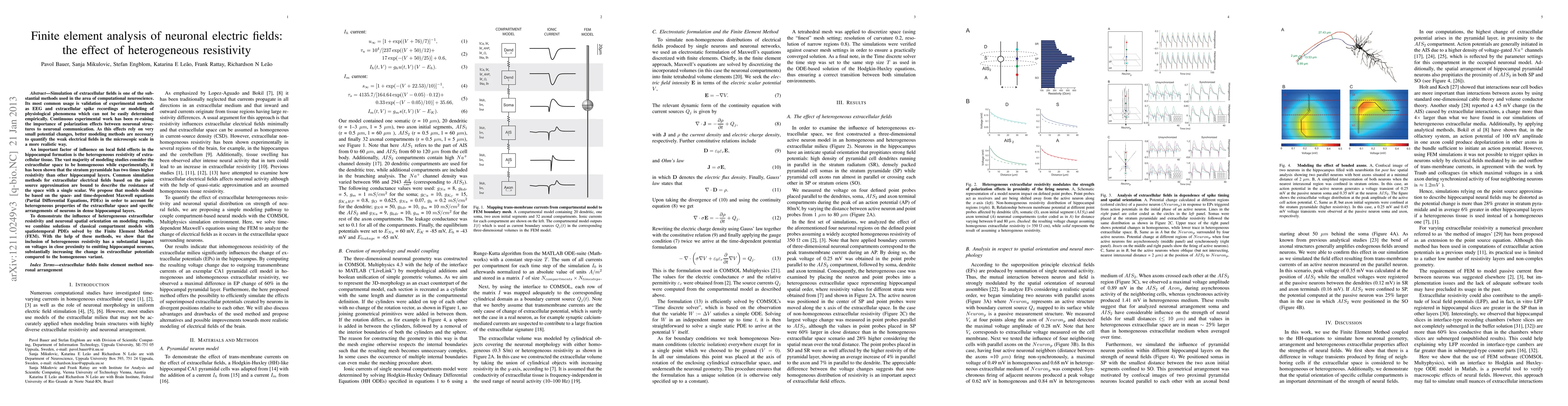 Simulation of extracellular fields is one of the substantial methods used in the area of computational neuroscience. Its most common usage is validation of experimental methods as EEG and extracellular spike recordings or modeling of physiological phenomena which can not be easily determined empirically. Continuous experimental work has been re-raising the importance of polarization effects between neuronal structures to neuronal communication. As this effects relies on very small potential changes, better modeling methods are necessary to quantify the weak electrical fields in the microscopic scale in a more realistic way. An important factor of influence on local field effects in the hippocampal formation is the heterogeneous resistivity of extracellular tissue. The vast majority of modeling studies consider the extracellular space to be homogeneous while experimentally, it has been shown that the stratum pyramidale has two times higher resistivity then other hippocampal layers. Common simulation methods for extracellular electrical fields based on the point source approximation are bound to describe the resistance of the space with a single, linear factor. We propose that models should be based on the space- and time-dependent Maxwell equations in order to account for heterogeneous properties of the extracellular space and specific arrangements of neurons in dense hippocampal layers. To demonstrate the influence of heterogeneous extracellular resistivity and neuronal spatial orientation on modeling results, we combine solutions of classical compartment models with spatiotemporal PDEs solved by the FEM. With the help of these methods, we show that the inclusion of heterogeneous resistivity has a substantial impact on voltages in close proximity to emitting neurons, increasing the extracellular potentials substantially compared to the homogeneous variant.