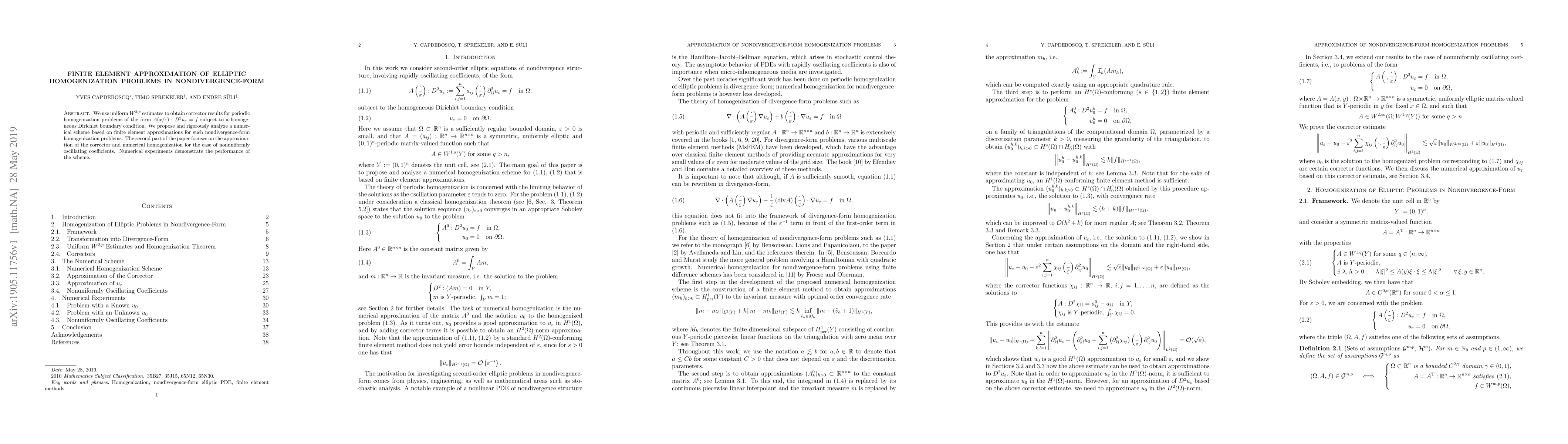 This paper develops a finite element method for approximating solutions to elliptic homogenization problems in nondivergence form, leveraging uniform $W^{2,p}$ estimates to derive corrector results. It rigorously analyzes the method and demonstrates its effectiveness through numerical experiments for both uniform and nonuniform coefficient oscillations.