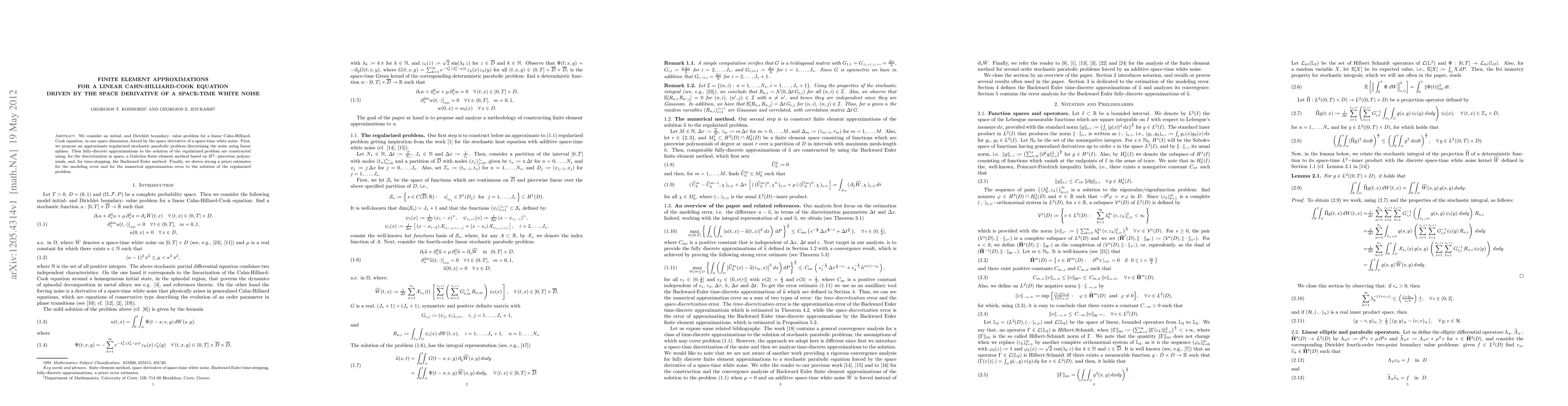 We consider an initial- and Dirichlet boundary- value problem for a linear Cahn-Hilliard-Cook equation, in one space dimension, forced by the space derivative of a space-time white noise. First, we propose an approximate regularized stochastic parabolic problem discretizing the noise using linear splines. Then fully-discrete approximations to the solution of the regularized problem are constructed using, for the discretization in space, a Galerkin finite element method based on H2-piecewise polynomials, and, for time-stepping, the Backward Euler method. Finally, we derive strong a priori estimates for the modeling error and for the numerical approximation error to the solution of the regularized problem.
